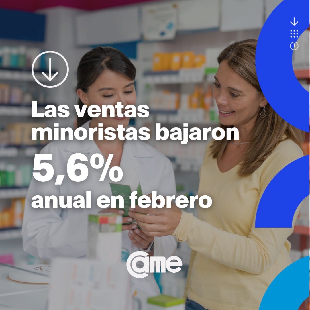 Las ventas minoristas de pymes cayeron 5,6% interanual en febrero